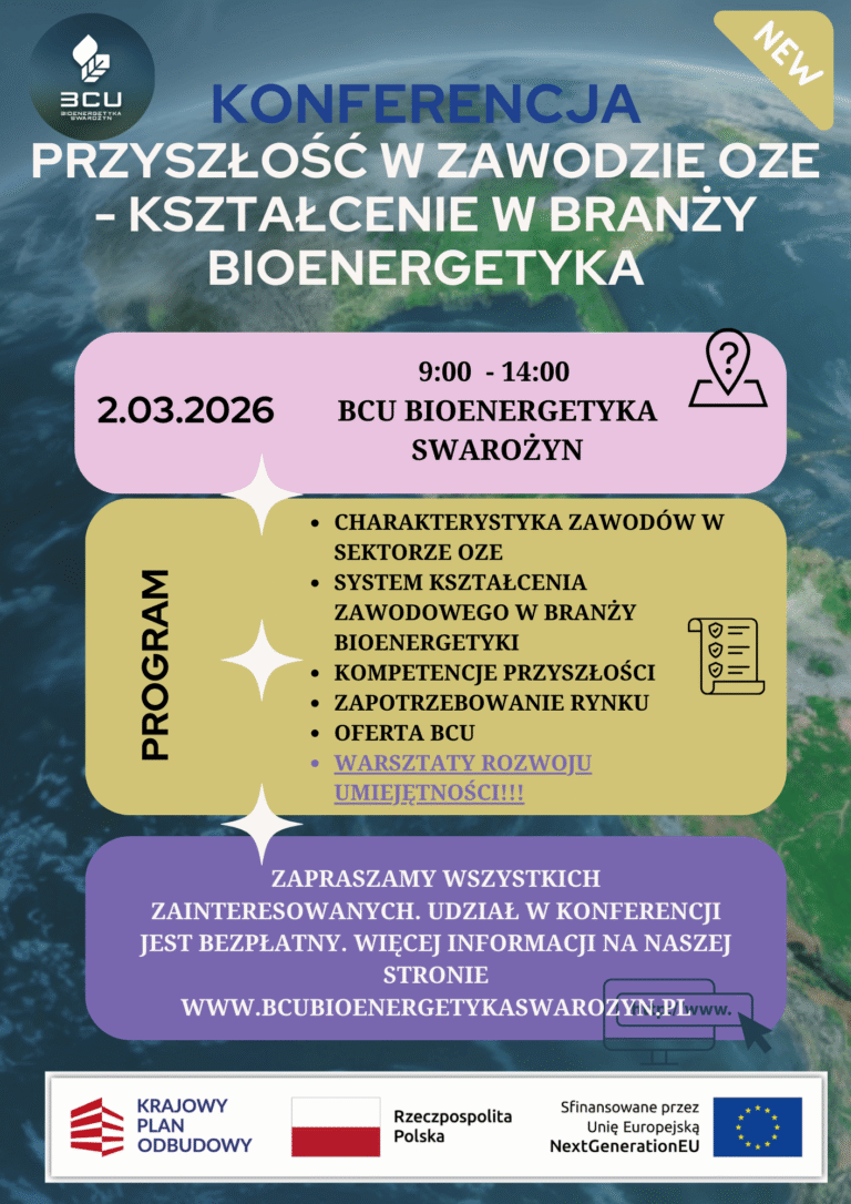 📅 2 marca 2026 r. 🕘 Godziny: 9:00–14:00 📍 Branżowe Centrum Umiejętności – Bioenergetyka, Swarożyn Zapraszamy na wyjątkową konferencję poświęconą zawodom w sektorze odnawialnych źródeł energii, ze szczególnym uwzględnieniem bioenergetyki! Jeśli myślisz...